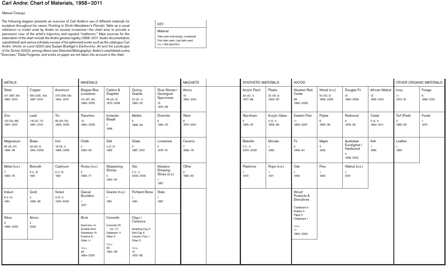 Andre’s career is surveyed by “Carl Andre: Sculpture as Place, 1958-2010,” a retrospective organized by the Dia Art Foundation and co-curated by Yasmil Raymond and Philippe Vergne. The show will be on view at Dia’s museum in Beacon, New York through March 2, 2015, after which it will travel to Madrid, Berlin and Paris.