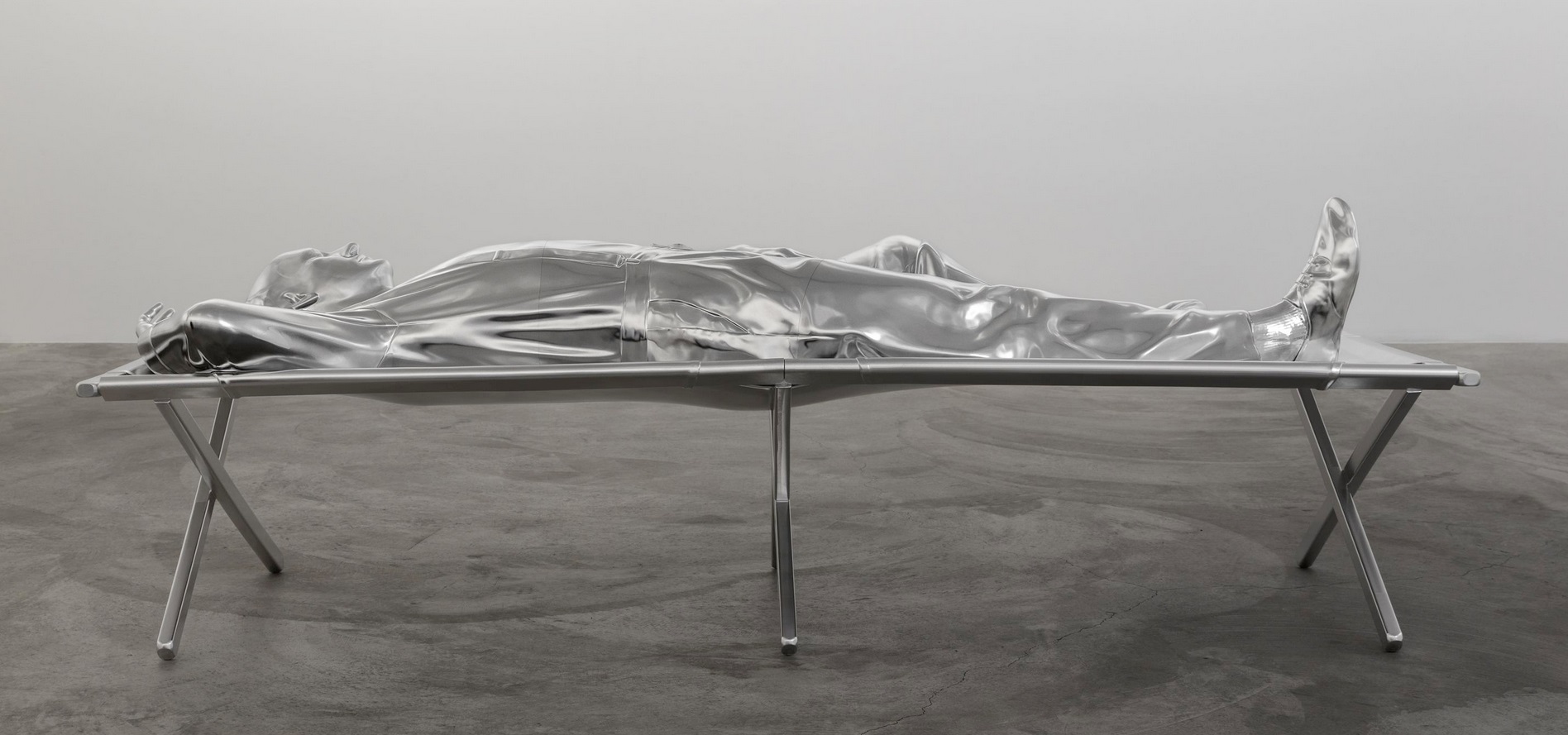 Charles Ray talked last November when he was showing two new works at Matthew Marks Gallery in Los Angeles: Baled Truck, a sculpture of a truck that’s been crushed into a rectangular block junkyard-style, and Mime, a scultpure of a reclining male figure on a cot.