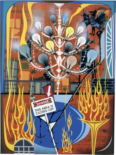One of Pittman’s most important paintings, The Veneer of Order (1985) is featured in the Museum of Contemporary Art Chicago exhibition “This Will Have Been: Art, Love & Politics in the 1980s.” The thesis of the exhibition, which was curated by Helen Molesworth, is that the political, often confrontational art of the 1980s had its roots in feminist art of the preceding decade. Pittman’s painting, and indeed his oeuvre, is a clear example of how feminist discourse and art motivated art in and after the ’80s. [Aside: The Yale University Press-published catalogue for the show is fantastic — and it’s 40% off here.]