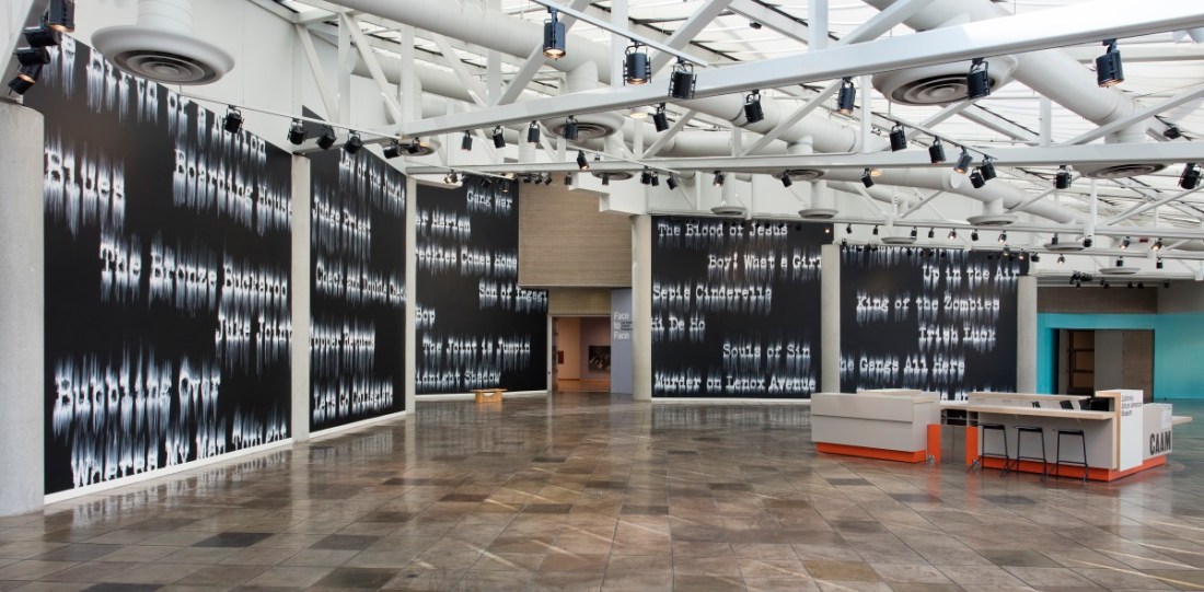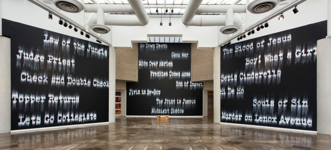 Gary Simmons, installation view of “Gary Simmons: Fade to Black” (2017) at the California African American Museum, Los Angeles.