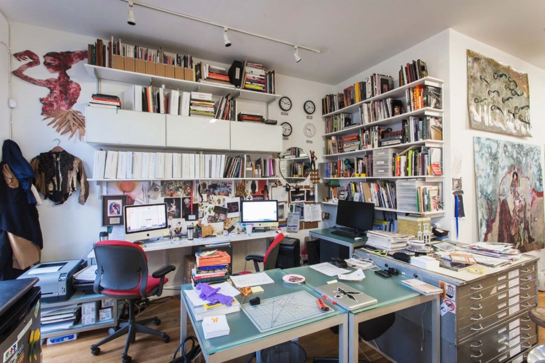 Wangechi Mutu’s studio library. Photo by Adi Shniderman.