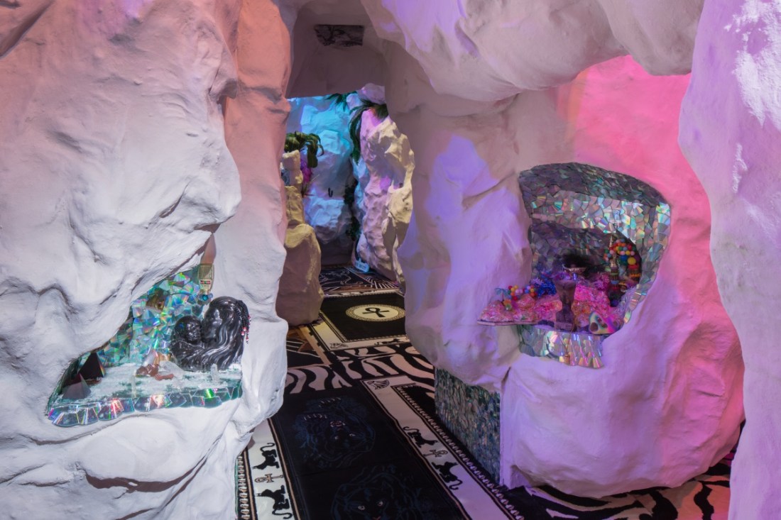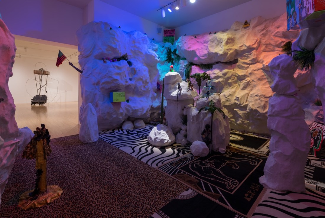 Installation view of Lauren Halsey, we still here, there, 2018 at the Museum of Contemporary Art, Los Angeles.