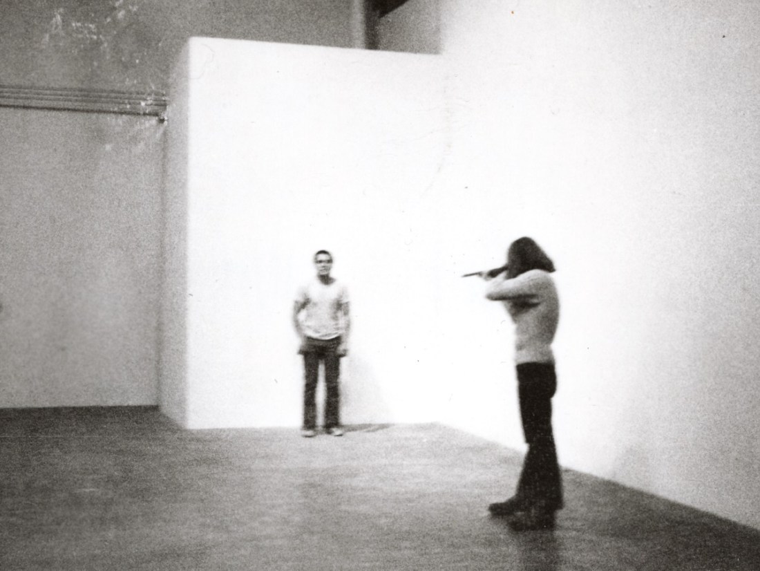 Chris Burden, Shoot, 1971. [Performance, photograph by Barbara T. Smith.]
