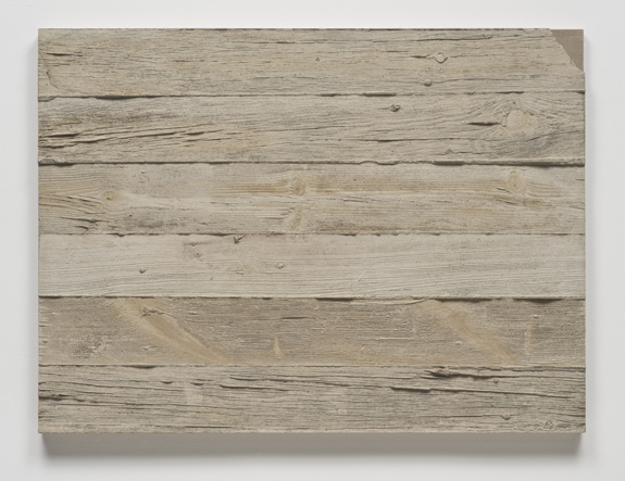 Analia Saban, Concrete Slab with Imprint of Six Horizontal Wood Beams and Missing Corner, 2013.