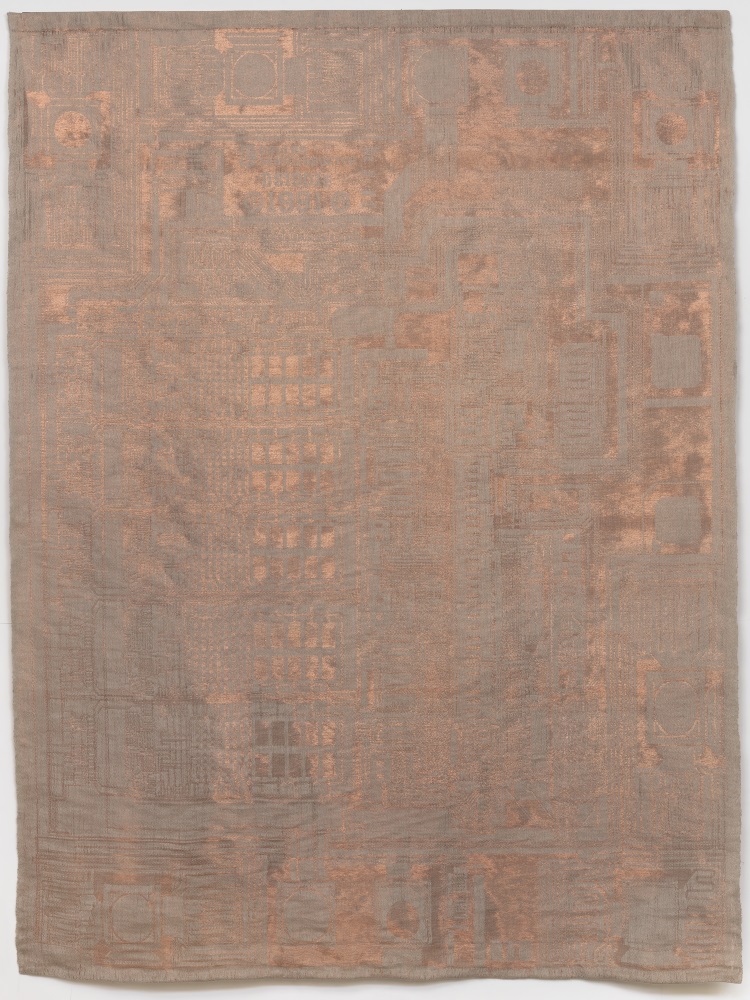 Analia Saban, Tapestry (Optical Mouse, Computer Chip for Motion Detection, Xerox, 1980), 2018.