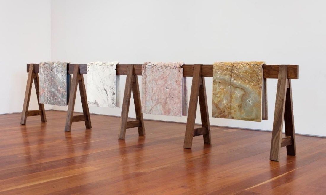 Analia Saban, Draped Marble (Fior di Pesco Carnico, Fior di Pesco Apuano, Crema Dorlion, Onyx), 2015.