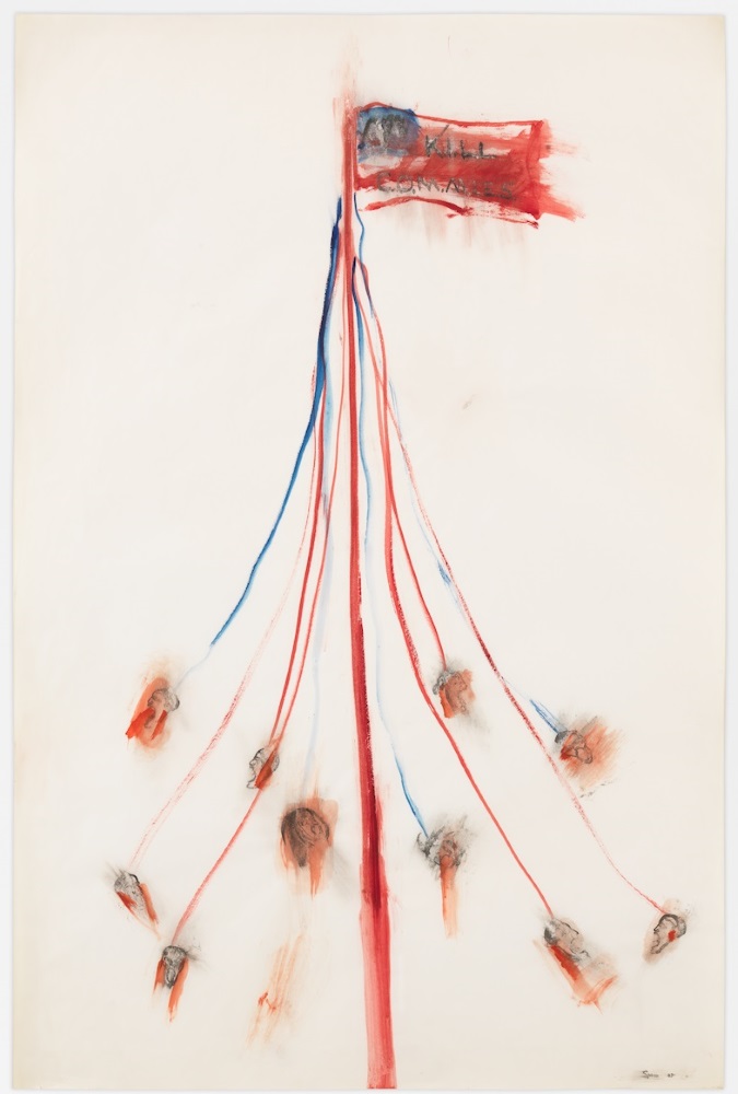 Nancy Spero, Kill Commies slash Maypole, 1967. © 2019 The Nancy Spero and Leon Golub Foundation for the Arts/Licensed by VAGA at ARS, NY, courtesy Galerie Lelong & Co. Photo: Christopher Burke Studio.