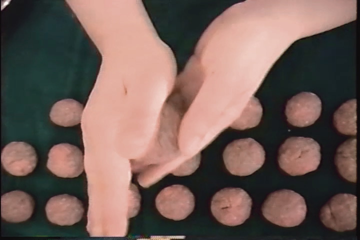Sheila Pepe, ambient painting meatballs (still), 1997.