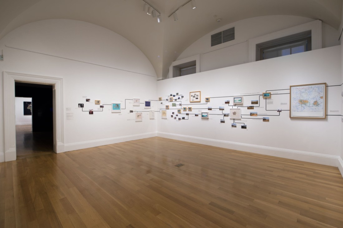 Installation view of Tiffany Chung, In Between Foraging Sites, First Raindrops and the Big .50, 2012, at the Sheldon Museum of Art, Lincoln, Neb.