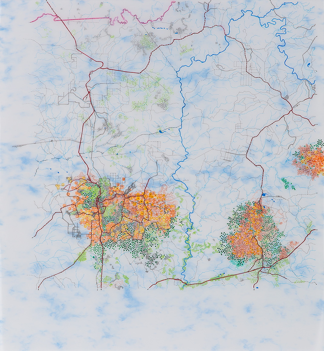 Tiffany Chung, An Lộc region – former airfields and old rubber plantations, 2015.