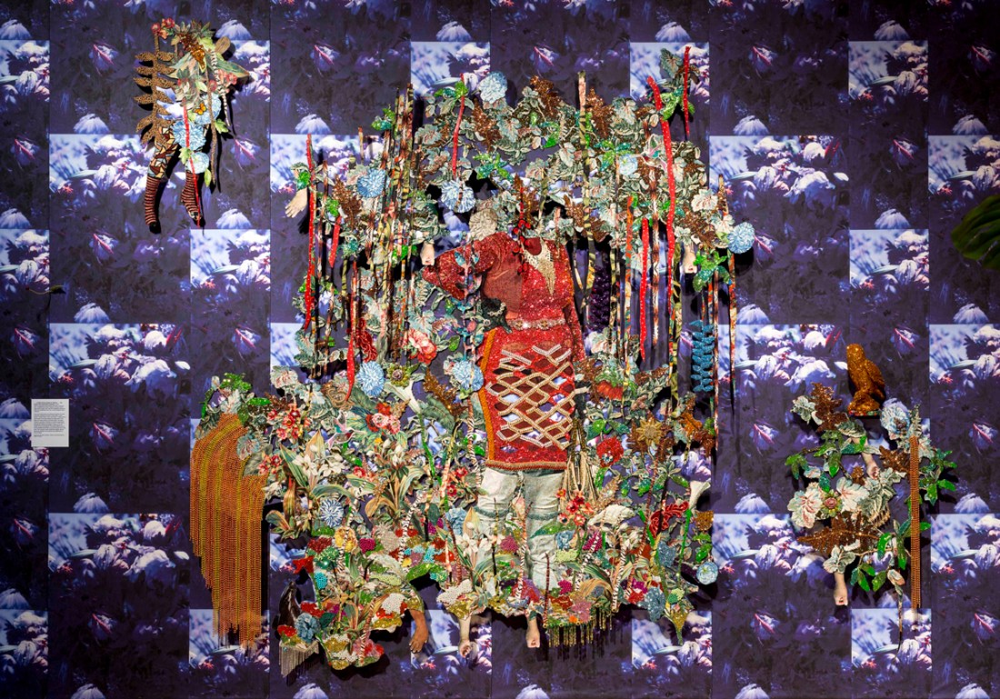 Installation View of “… buried again to carry on growing…,” by Ebony G. Patterson at the Museum of Arts and Design, New York.