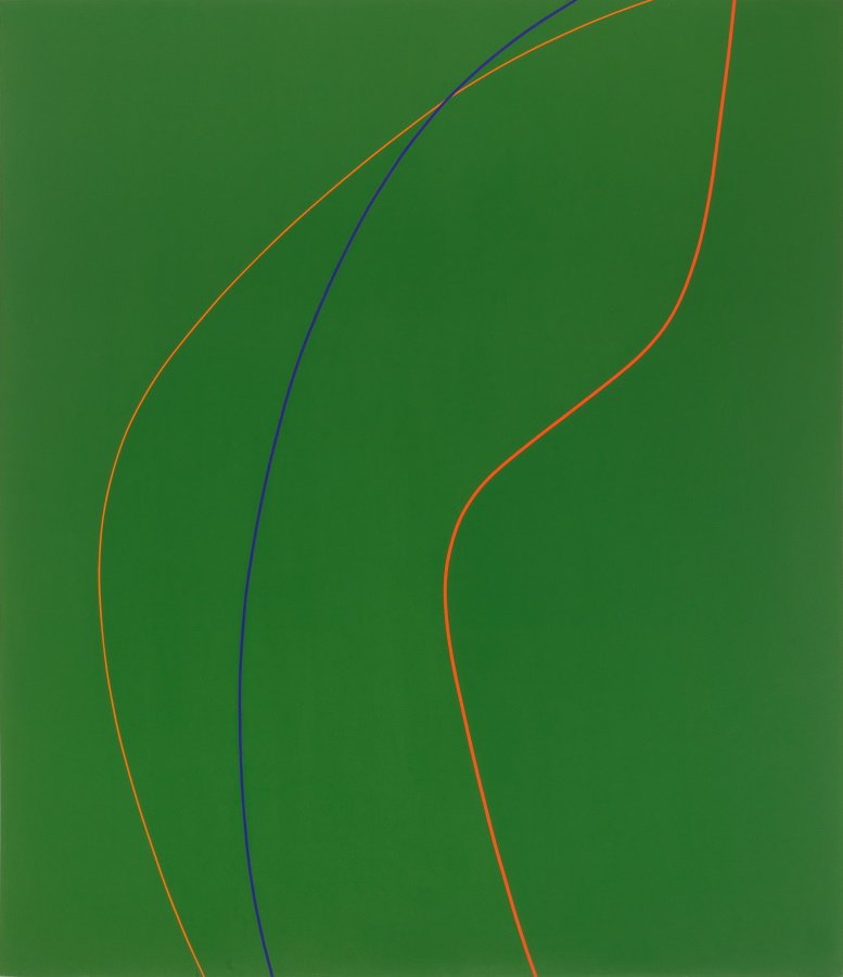 The Menil Collection is presenting “Virginia Jaramillo: The Curvilinear Paintings, 1969-74” through July 3, 2021. It is the first solo museum exhibition of Jaramillo’s sixty-year career. Curated by Michelle White, the show features a series of paintings that Jaramillo made featuring the joining of line to color against mostly monochromatic backgrounds.