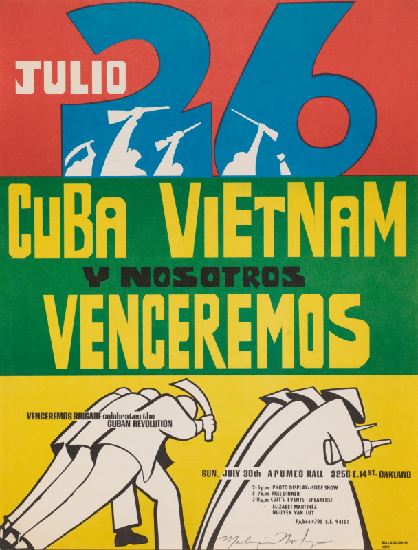 Malaquias Montoya, Julio 26 – Cuba Vietnam y Nosotros Venceremos, 1972.