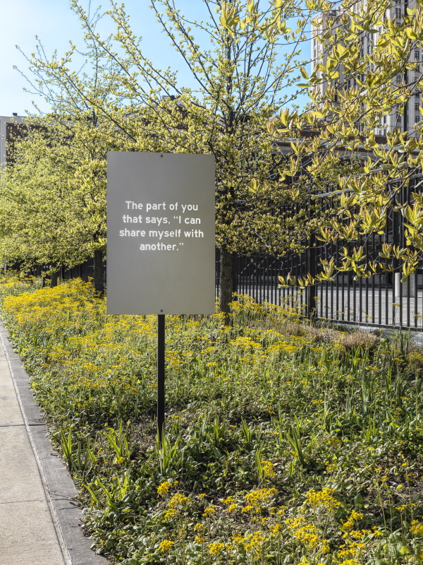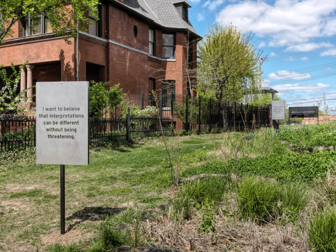 The Pulitzer Arts Foundation is showing “Chloë Bass: Wayfinding” through October 31. The exhibition is an installation of sculpture informed by public wayfinding signage of the sort that directs tourists through a city. Chloë Bass created more than 30 signs which she then placed throughout the Pulitzer’s outdoor spaces. “Wayfinding” is part of Bass’s “Obligation to Others Holds Me In My Place” project.