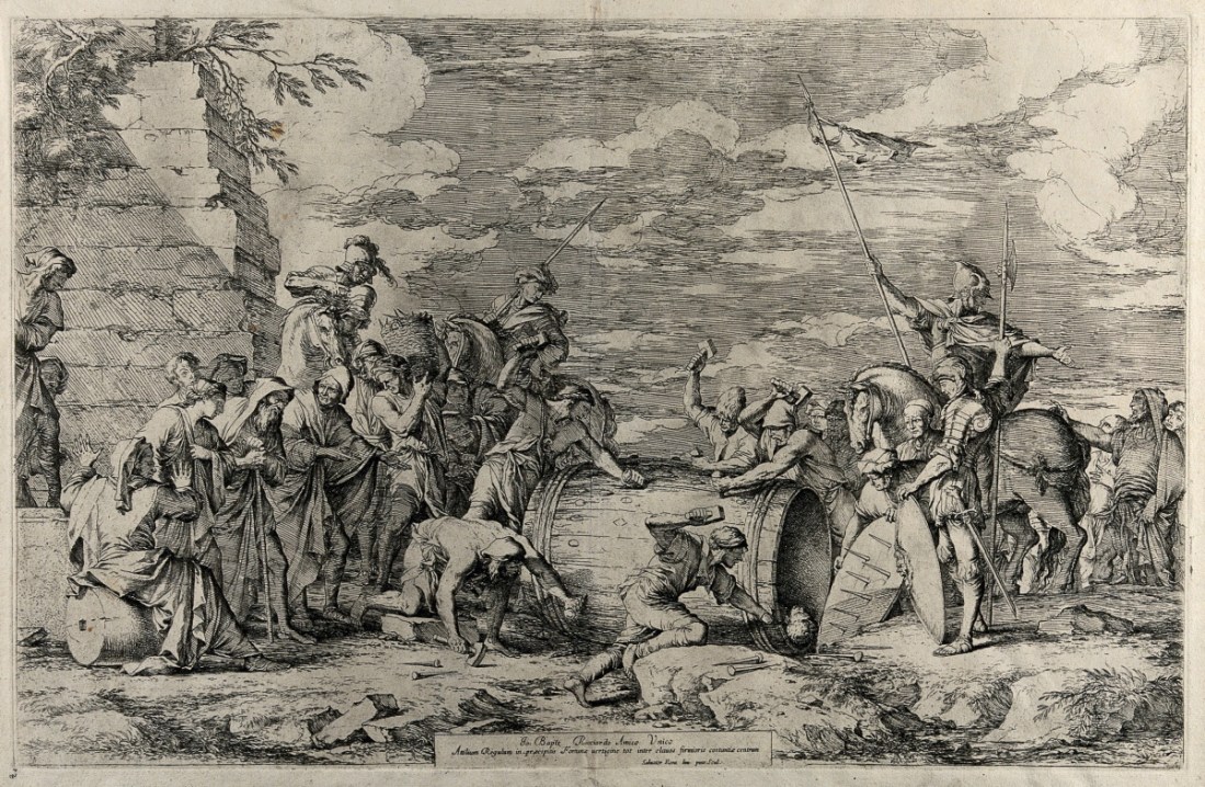 Salvator Rosa, Carthaginian soldiers preparing the martyrdom of Attilius Regulus, 1661.
