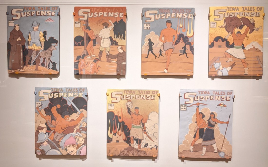 Installation view of works from Jason Garcia’s “Tewa Tales of Suspense!” series at the Peabody Essex Museum,.