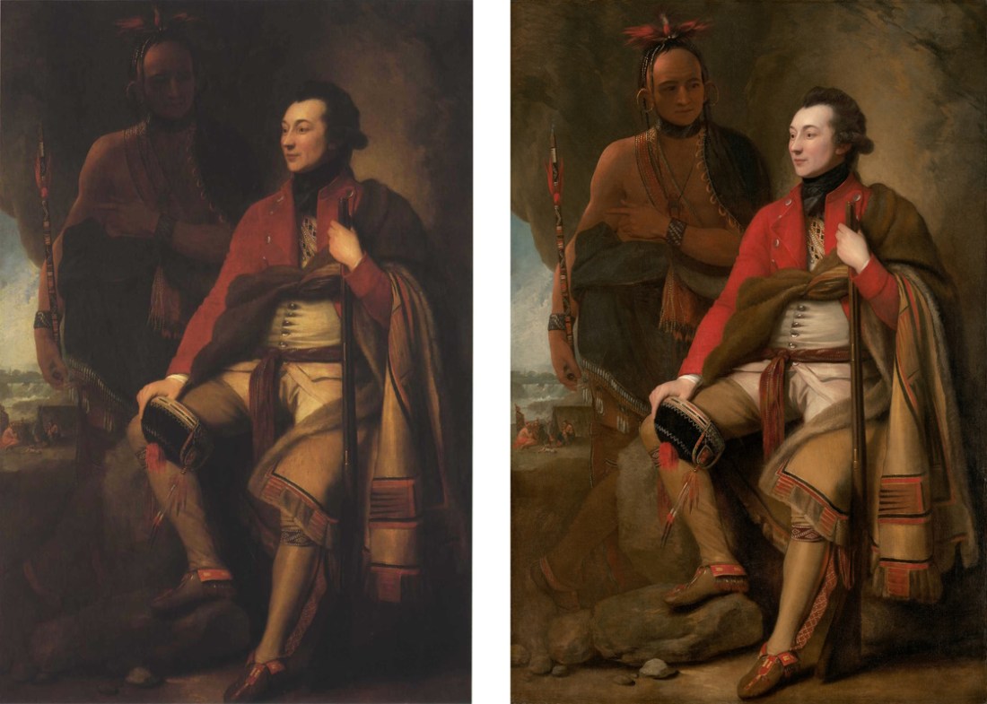 Benjamin West, Guy Johnson & Karongheyontye, 1776, NGA before and after presumed cleaning.