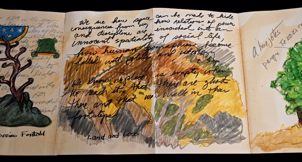Across a half-century, Mesa-Bains has foregrounded Chicana forms such as altares (home altars), ofrendas (offerings to the dead), descansos (roadside resting places), and capillas (home yard shrines) into contemporary art. Her work often spotlights domestic spaces and the construction of landscape in ways that highlight colonial erasure. Among the museums which have presented solo exhibitions of Mesa-Bains’ work are the Whitney Museum of American Art, the Williams College Museum of Art, the Fowler Museum at UCLA, and the San Francisco Museum of Modern Art.