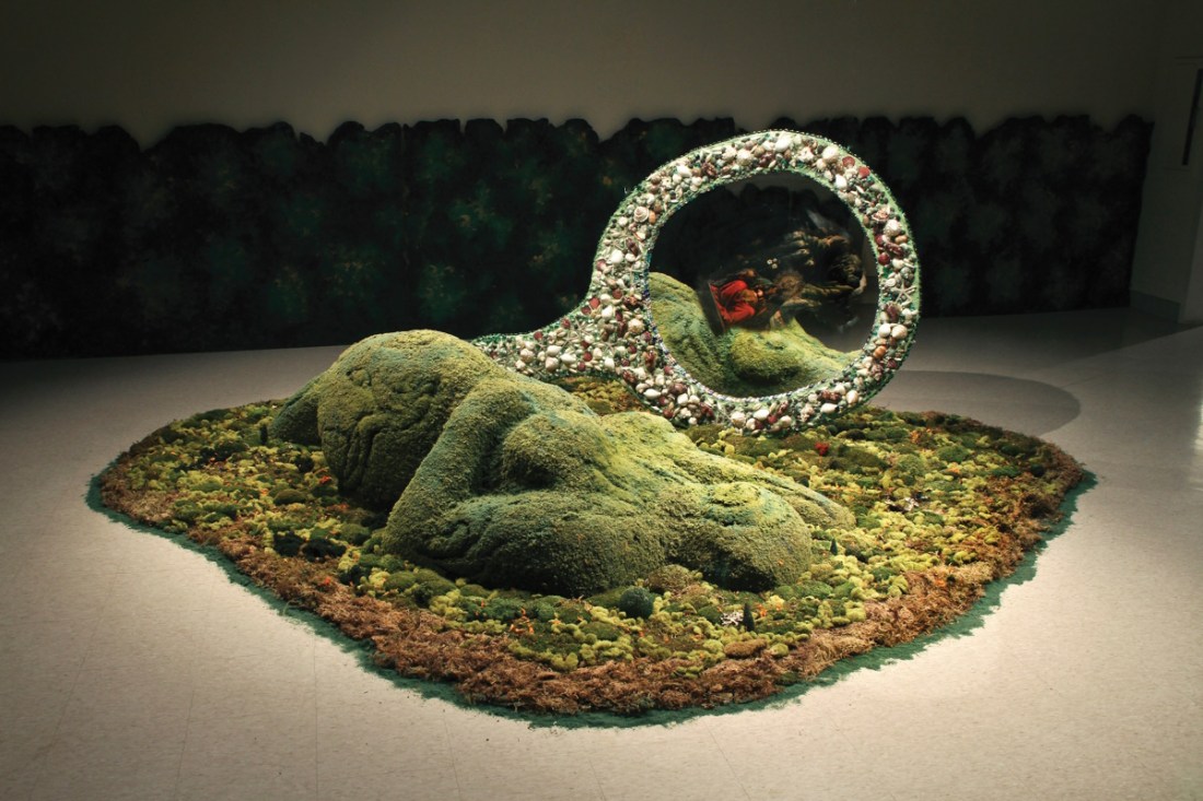 Amalia Mesa-Bains, Cihuateotl with Mirror in Private Landscapes and Public Territories, 2018.
