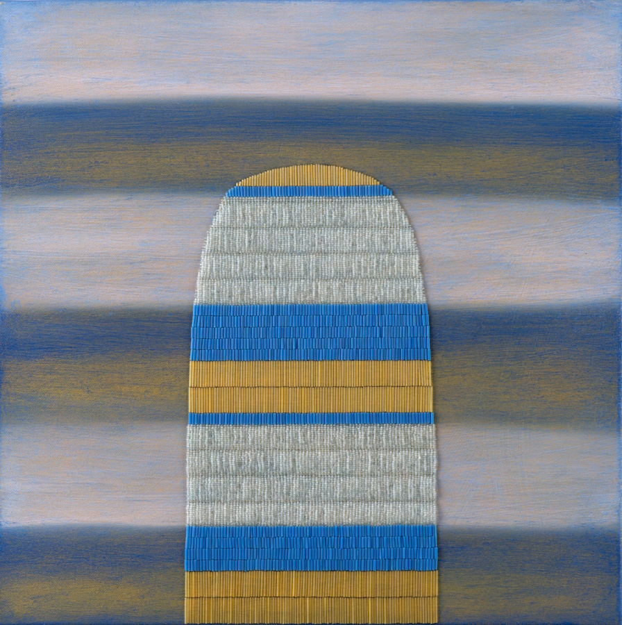 Dyani White Hawk, Untitled (blue and gold), 2016.