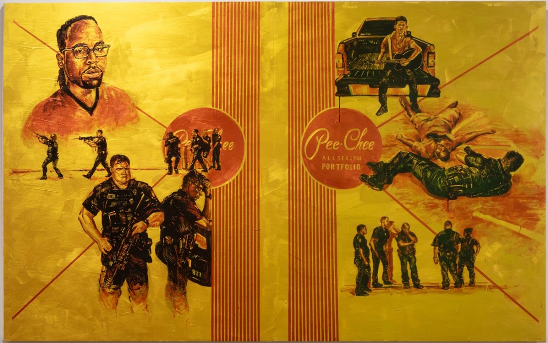 Martinez is a Los Angeles-based painter whose work investigates socio-economic position, immigration, police violence, and civic and cultural loss. He’s had solo shows at museums and kunsthalles such as the ICA San Francisco, the Tucson (Ariz.) Museum of Art, the Madison Museum of Contemporary Art, and the Vincent Price Art Museums. He’s been in recent group shows at the Riverside (Calif.) Art Museum, The Broad, Los Angeles, the Museum of Contemporary Art, Los Angeles, the Crystal Bridges Museum of American Art, Bentonville, Ark., and El Museo del Barrio, New York.