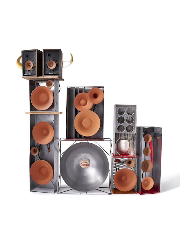 The Nasher Museum of Art at Duke University is presenting “Cannupa Hanska Luger: Speechless,” an examination of the complications of colonial histories from an Indigenous perspective. “Speechless” particularly focuses on how narratives, myths, and histories are constructed through the concept of the cargo cult, which developed as a result of Western military campaigns that delivered supplies to foreign lands inhabited by Indigenous peoples. These cults formed around the provisions that were delivered by the imperial forces (such as radios), the very groups that were colonizing Indigenous lands. The exhibition was curated by Apsara DiQuinzio and remains on view through July 6.
